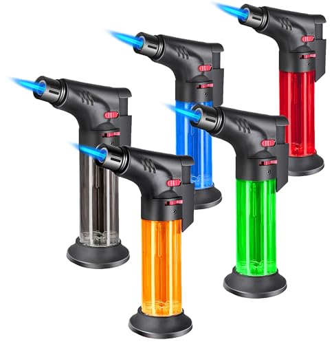 LARGE VISIBLE FUEL TANK: Unlike regular lighters, this butane torch lighter comes with a 6.0-gram fuel tank, ensuring long last usage. The fully transparent fuel tank lets you check the remaining fuel at a glanceβno more worries about sudden runouts