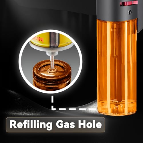 REFILLABLE : Unlike disposable lighters, our torch lighters can be refillable with butane gas, promoting efficient. Please purge the air from tank before refilling. And choose a butane gas canister with a LONG & METAL FILLING TIP