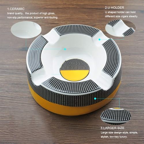 Cigar Ashtray Big Ashtrays for 8″ Round Cigarettes Large Rest Outdoor Cigars Ashtray for Patio/Outside/Indoor Gifts for Men
