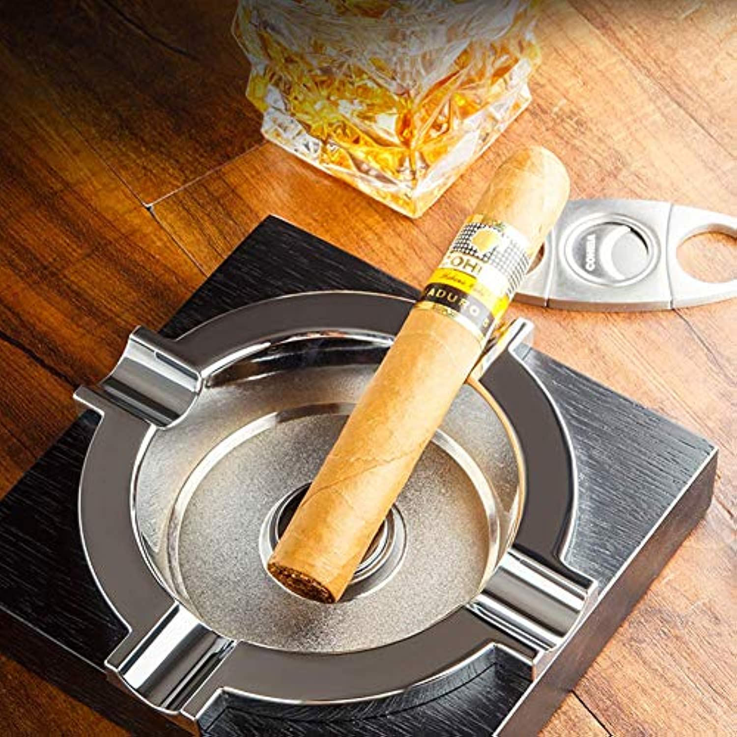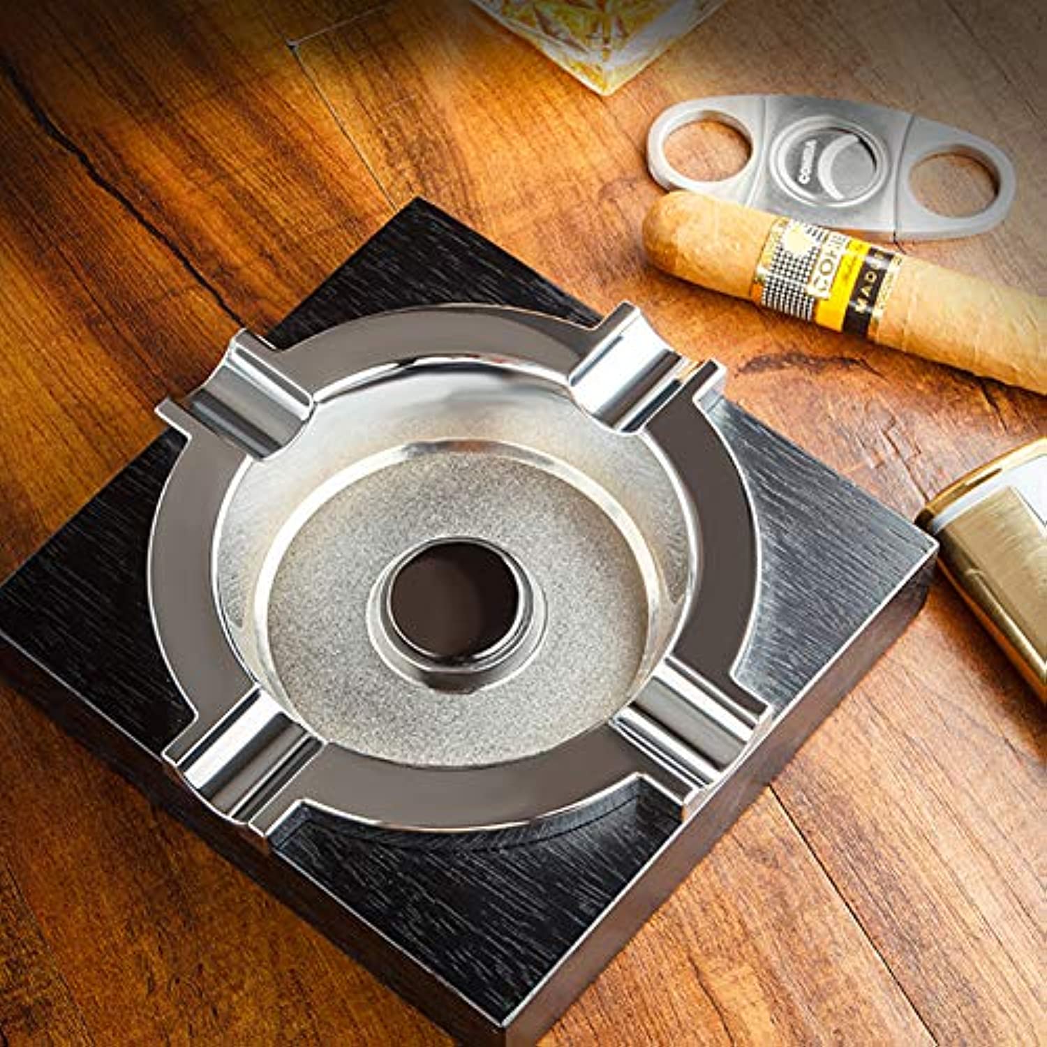 - SOLID METAL CIGAR ASHTRAY: The ashtray is polished chrome finish, making it worthy of your cigar