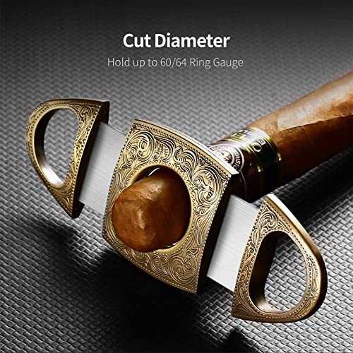 Cigar Cutter Stainless Steel Bronze Engraved Double Cut Blade (Color:Gold1)