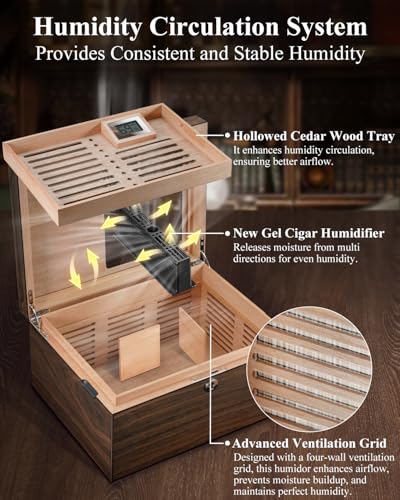 Accurate Digital Hygrometer – Innovated inbox hygrometer displays real time humidity, with upgraded sensor, it refresh every 10 seconds, monitoring your cigars are always in a proper aging environment