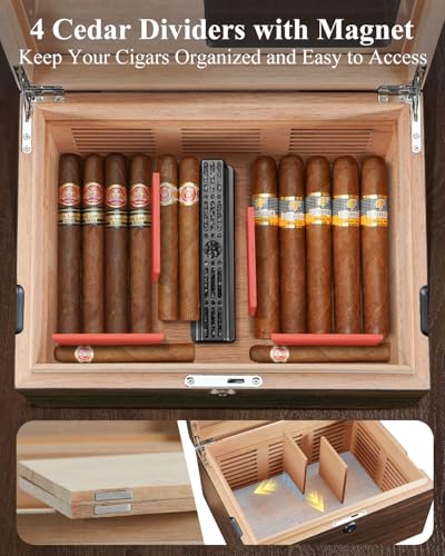 Customizable Organization with Magnetic Dividers β Keep your cigar collection organized with four adjustable magnetic dividers that let you create custom sections for different cigar types, ensuring easy access and neat storage