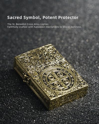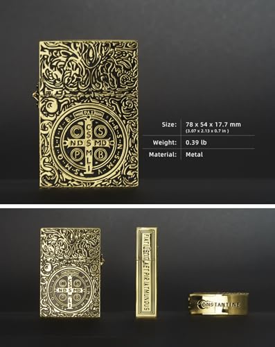 Constantine Lighter, Carved Vintage Oversized Heavy Armor Style Gold Petrol Kerosene St Benedict Metal Lighter for Collect Men, Dad, Husband Gift