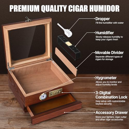 Premium Leather: Crafted from FULL GRAIN Crazy Horse leather, mens cigar storage case is thick, durable and has a retro luxury look