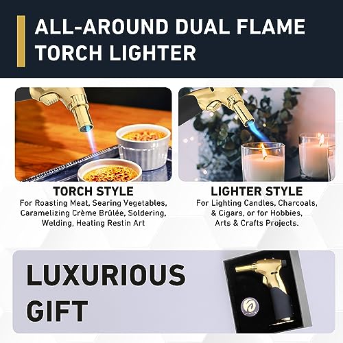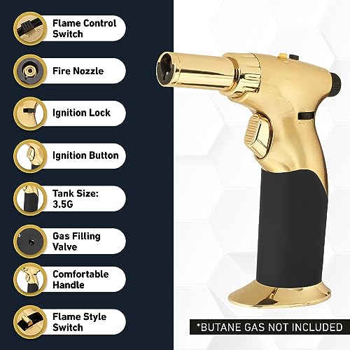 Master the Power of Fire: Express your passion with our innovative kitchen torch lighter. Our handheld blow torch features an ignition lock, giving bartenders, chefs, and artists up to 30 minutes of continuous flame.