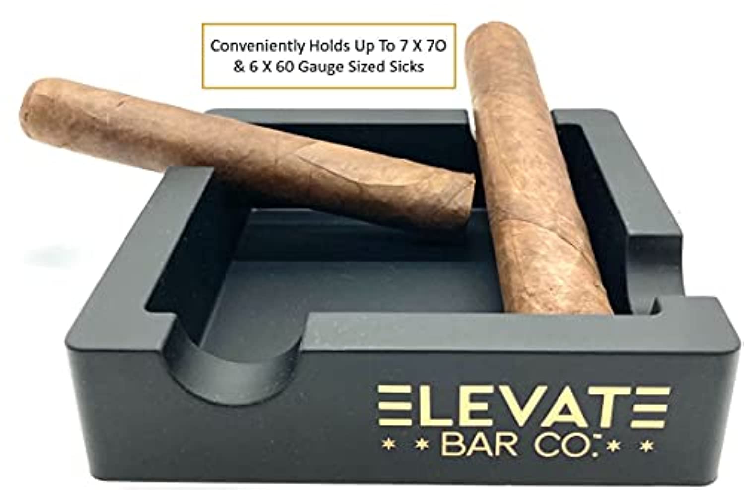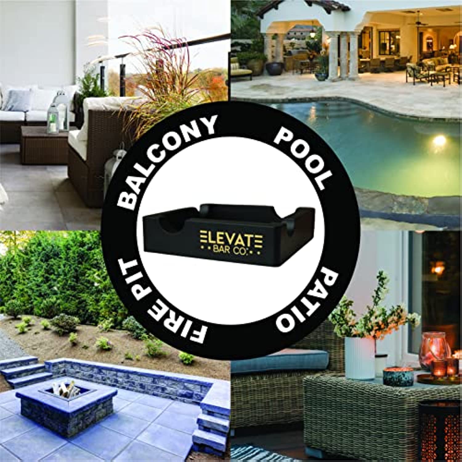 Elevate Bar Co.™ Shatterproof Silicone 4-Person Ashtray, Built with Extra Wide Cigar Rest (Holds 70+ Gauge Cigar), Designed for indoor and outdoor use