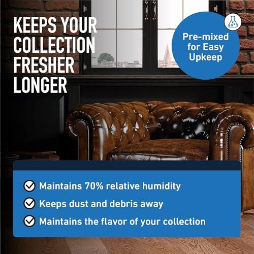 Safe & USA-Manufactured: Made from non-irritating propylene glycol, the cigar humidor juice forms a protective barrier to maintain ideal RH, ensuring the taste, texture, and quality of your collection remain consistent.