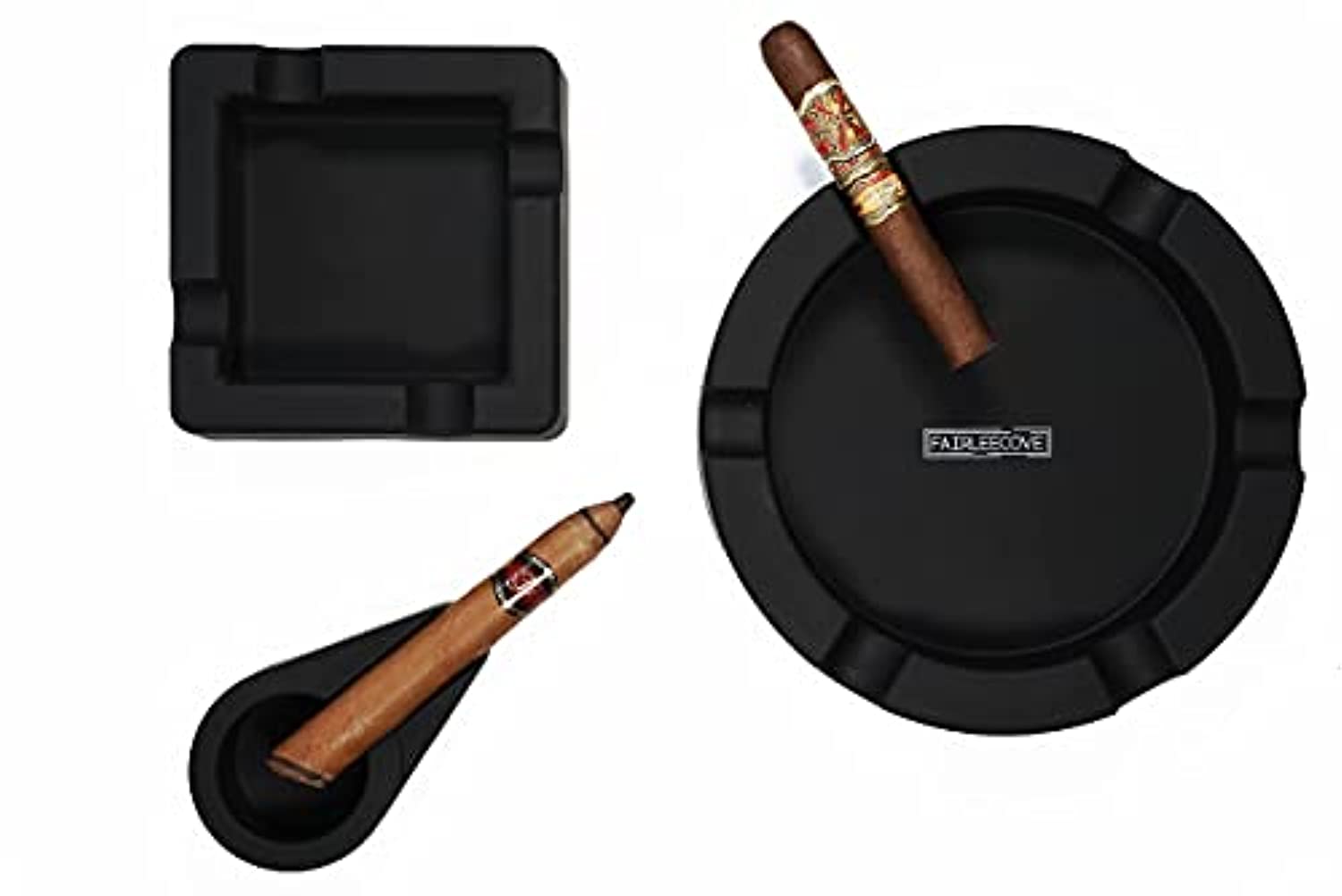 FairleeCove Cigar Ashtray for Large Gauge Cigars – Wide Shelf – Unbreakable Silicone – Sturdy Indoor Outdoor Cigar Ashtrays for Patio Deck Pool