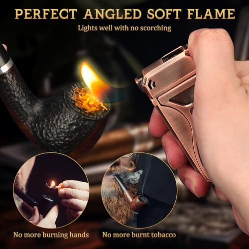[360° Reversible Soft Flame] – Compared to traditional matches,this pipe lighter is designed to ignite your pipe efficiently while keeping your fingers safe;Its angled soft flame ensures even combustion,delivering a smoother and more convenient smoking experience;A must-have for pipe enthusiasts