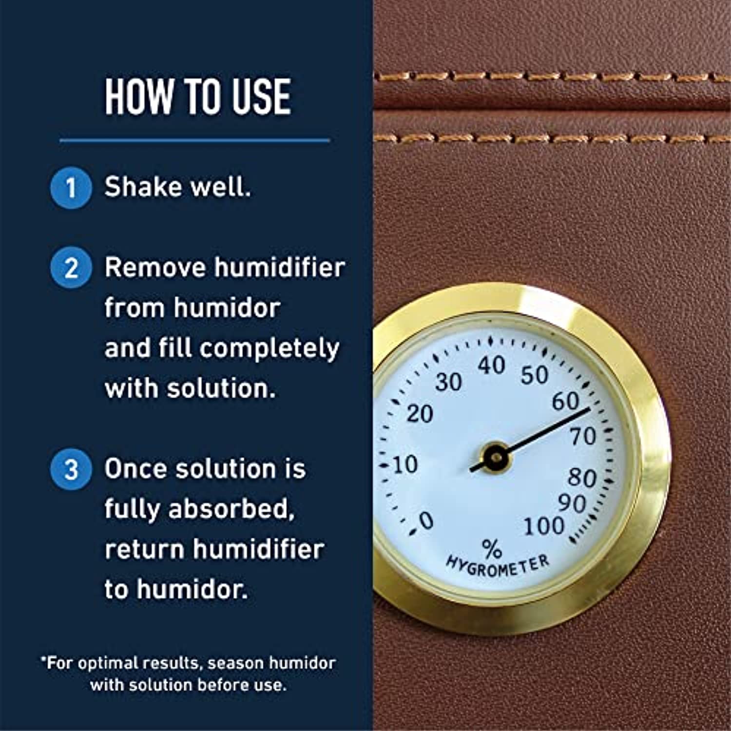 - Keep Your Collection Fresher, Longer: Use our 2-Pack Essential Values humidor solution in your personal box, cabinet humidor, travel humidor, or humidifier of your choice. Our high-quality propylene glycol for humidors maintains 70% RH (relative humidity), keeping your humidor from molding or drying out