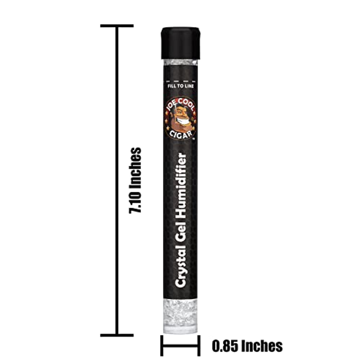 Joe Cool Cigar Crystal Gel Humidifier Tubes are pre-charged and ready for use. Simply remove the black cap and place the tube inside your humidor. When the crystal shrink down below the “Fill To Line” refill with Joe Cool Cigar Propylene Glycol Solution.