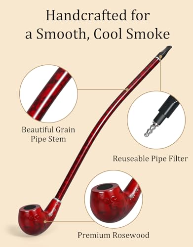 [Exquisite Rosewood Craftsmanship] Immerse yourself in the beauty of the Joyoldelf Churchwarden Tobacco Pipe, meticulously handcrafted from exquisite rosewood. The pipe bowl features intricate hand-carved patterns, showcasing both natural elegance and artistic design, making it a timeless piece for collectors and enthusiasts.