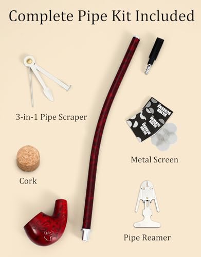 [Complete Set of Accessories] Enhance your smoking experience with the Joyoldelf tobacco pipe’s extensive accessory collection. The set includes a 3-in-1 pipe scraper for cleaning residue, resistant metal screens to keep ash from entering the stem, a pipe reamer for maintaining the bowl’s interior, and a cork knocker for safely tapping out ash. These thoughtfully included tools ensure easy maintenance and enjoyable smoking sessions.