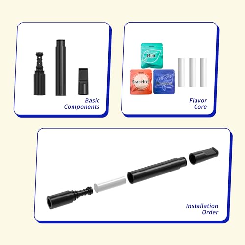 Natural Herbal Air Stick, Replace Bad Habit Air Device with 3 Flavors Cores, Air Diffuser Smokeless Inhaler with Mint, Blueberry & Grapefruit Flavor Packs