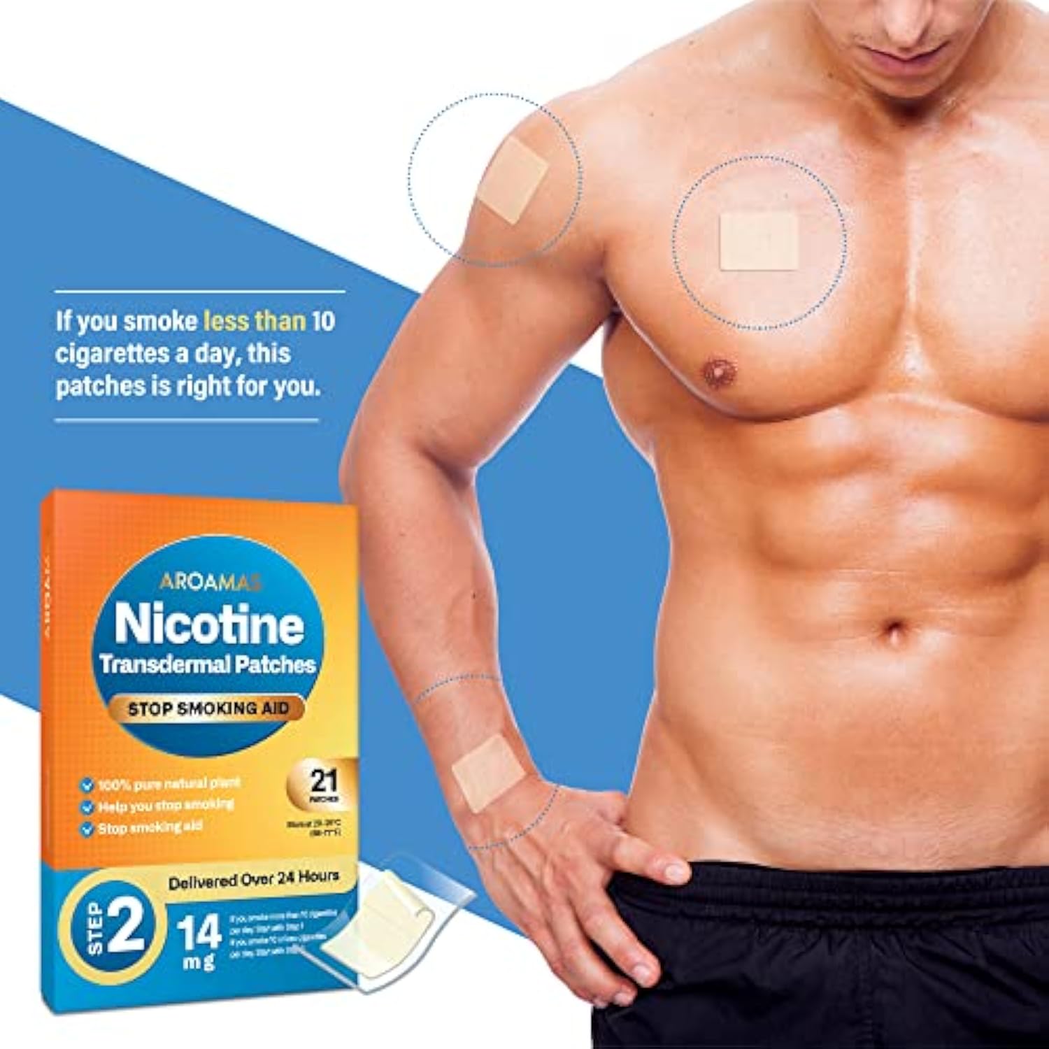 Personalized Program : Aroamas Nicotine Patches offer a 3 steps down approach to stop smoking over an 8-10 week period. Beginning with the 21 mg patch(Step 1) if you smoke more than 10 a day.