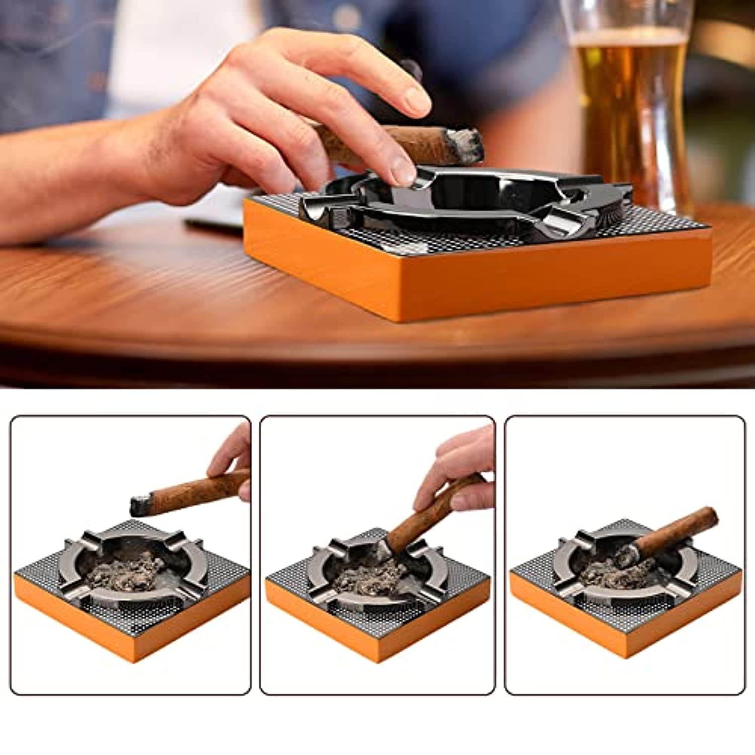 • Useful and convenient. The cigar ashtray have 4 large cigars grooves to hold cigar or cigarette steady, fit any cigar or cigarillo