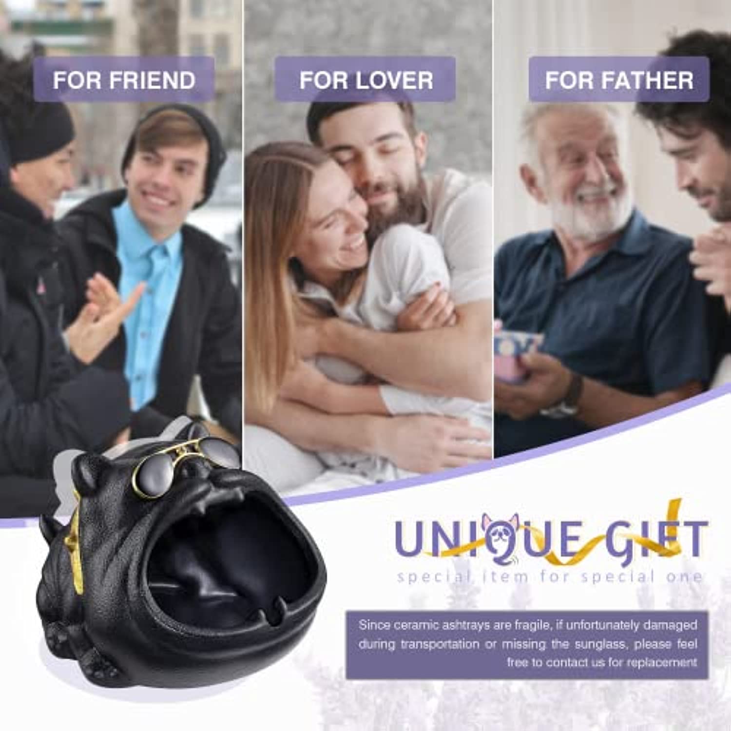 • 怐NO RISK TO BUY怑We promise that this cute ashtray has a one-year warranty. Since ceramic ashtrays are fragile, if unfortunately damaged during long-distance transportation or if you get one without glasses, please feel free to contact us for replacement and we’ll get back to you within 24 hours.