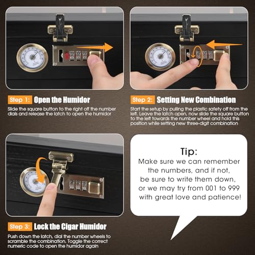 【Double Protection Design】Each cigar humidors has an easy-to-use digital combination lock device for safe storage of your cigars. The bottom of the cigar box also features a soft, scratch-resistant felt material that not only protects the table from frictional damage, but also allows the humidor to maintain a grip and stable placement, leaving your cigars in a secure context with double protection.