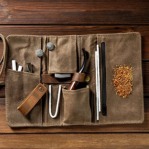 Whitluck’s Tobacco Pipe with Waxed Canvas Pipe Roll, Handmade Wood Smoking Pipe with Ultimate Beginner Guide E-Book, Travel Tobacco Pouch – Smoking Gift Set and Accessories