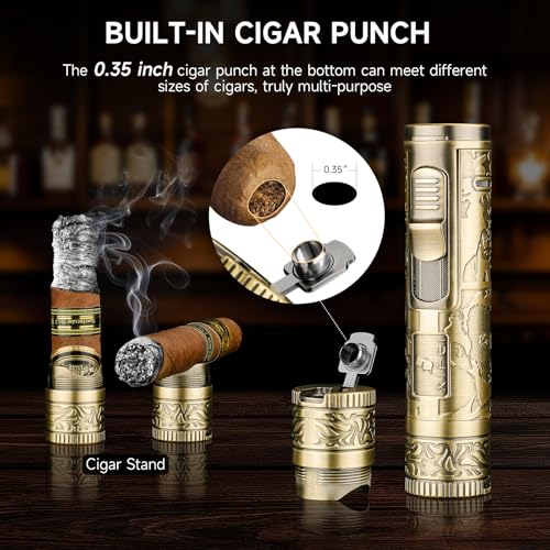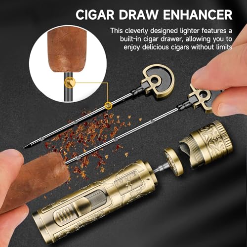 [Premium Quality Construction]: Our 4-in-1 cigar lighter combines durability and functionality, ensuring that it is easy to use even in everyday use. The multifunctional design also makes it easy for you to carry it on the go for a variety of occasions, while the engraved pattern on the body adds a touch of refinement