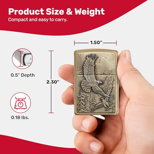 Be the first to review “Zippo Eagles Dare Pocket Lighter – Refillable Flip-Top Windproof Lighters – Fierce Soaring Eagle Patriotic Design Pocket Lighters – Luxury Metal Lighter Made in USA”