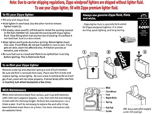 Designed for a lifetime of use; for best performance, we recommend using genuine Zippo fuel, flints, and wicks.